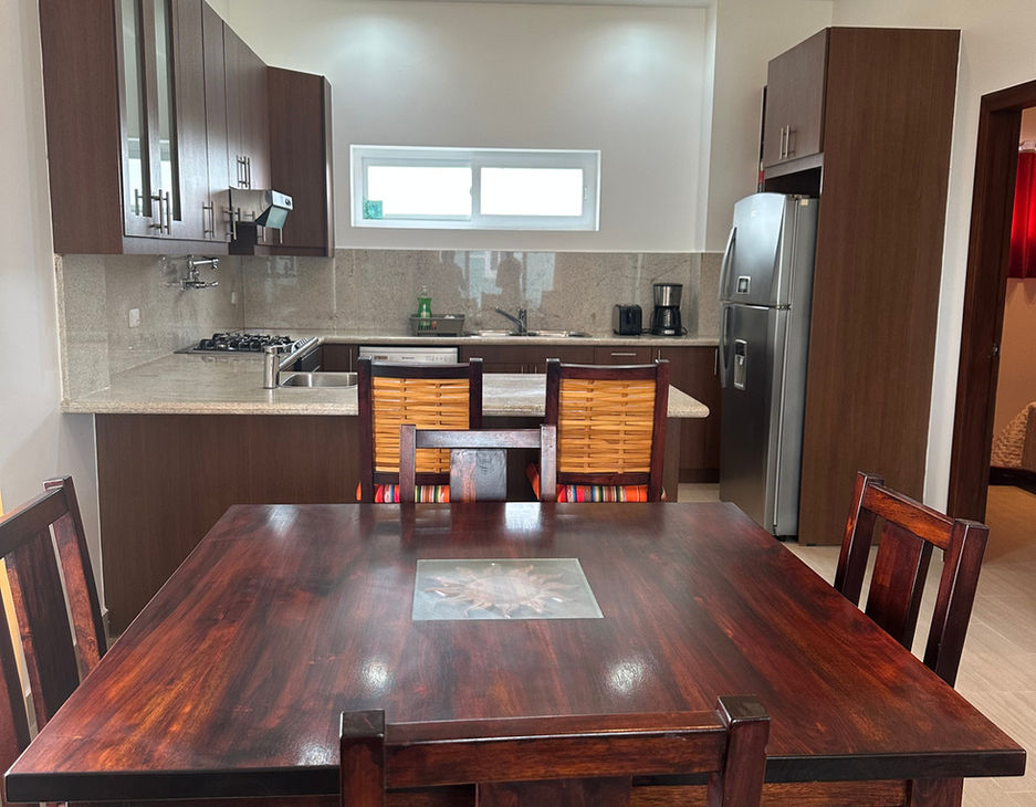 • Cocina equipada con estufa a gas, horno eléctrico, lavavajillas y refrigerador